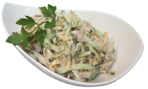 Грудка отварная, свежий огурец, сыр, фирменный соус.