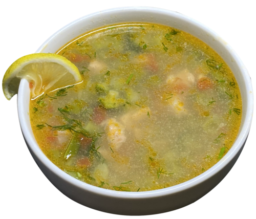 Куриная грудка, морковь, лук, картофель, лапша, зелень.